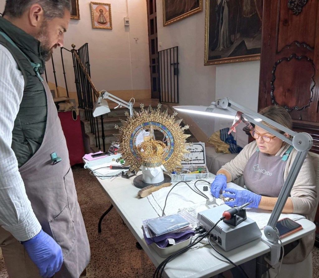La Hermandad de Nuestra Señora de la Coronada, cumpliendo con su papel de custodios del patrimonio heredado, ha llevado a cabo la limpieza de las coronas de coronación del Divino Infante y la Santísima Virgen.